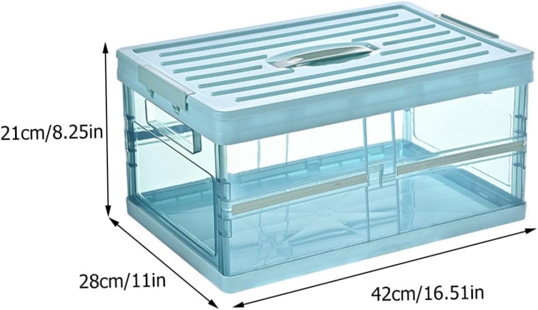 Package List 1 x storage box Characteristics - Size: 42.00X28.00X21.00cm/16.51X11.00X8.25inch Storage Organizer. - Capacity: 30L Household Container. - Color: Blue Home Storage Case. - Material: Plastic Clothes Organizer. - Creative transparent and foldable design, and convenient to use Sundries Container. - The storage box with lid, and Home Storage Organizer. - Adoption of plastic material, and for use Storage Case. - Smooth and round edge, not hurting your delicate hands. - An for housewarming friends, suitable for placing in bedroom, living room, etc.Goods DescriptionHome Storage Case With large capacity, foldable and stackable design, it can store many stuffs, more space-saving and .Storage Organizer Store tools and small items in your vehicles' boot and keep it from clutter.Household Container This item is made of plastic material, and lasting for use
