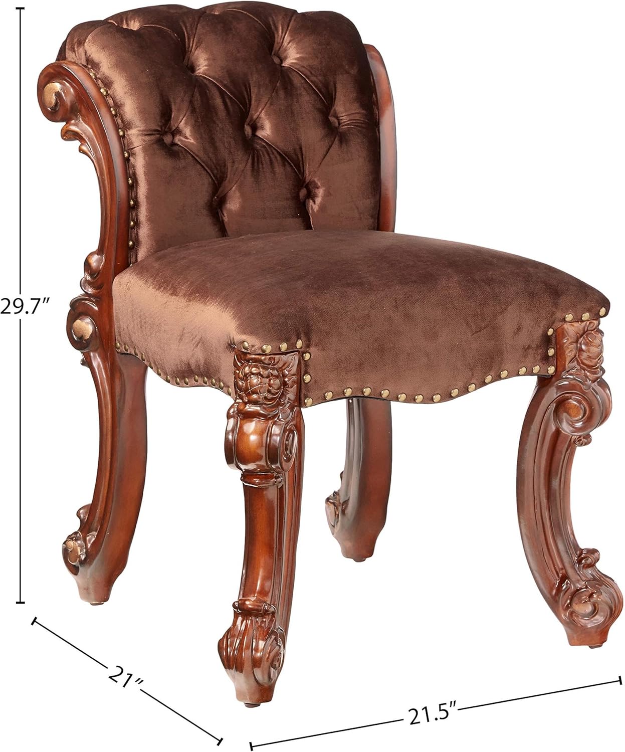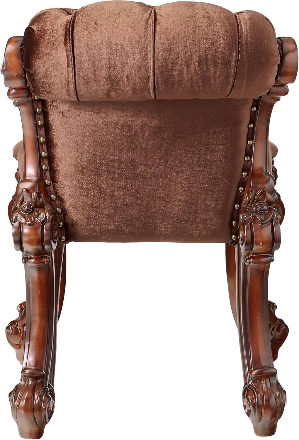 ACME Furniture 22010 Vendome Vanity stool, fabric & cherry. Button tufted backrest. Nail-head trim. Scrolled legs. The country of Origin of the product is China.