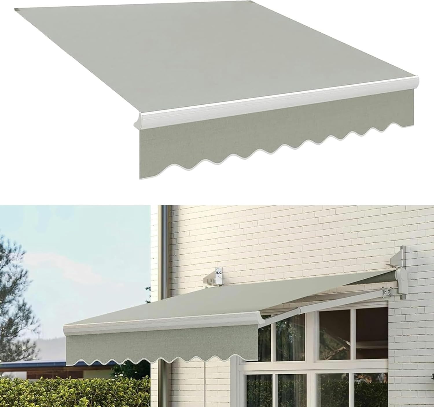 This rain cover replacement fabric protects against damage caused by the sun. In addition, the heavy-duty Oxford fabric awning provides excellent shade to keep your patio area cool and comfortable on the hottest days.Product Name: Replacement Awning FabricMaterial: Polyester 280g with PU waterproof coatingColour: black, blue, brown, greyPackage content: 1x replacement awning fabric (frame not included)Note: The picture may be slightly different from the actual colour of the product. We will try our best to show you the exact colour.Features:- Polyester fabric- PU waterproof coating- UV and fade resistant- Tear-resistant, removable and washableDimensions (LxW):(6.6x5ft)2x1.5m , (8.2x5ft)2.5x1.5m , (10x5ft) 3x1.5m , (13x5ft) 4x1.5m , (16x5ft)5x1.5m , (20x5ft)6x1.5m , (22.9x4.9ft)7x1.5m