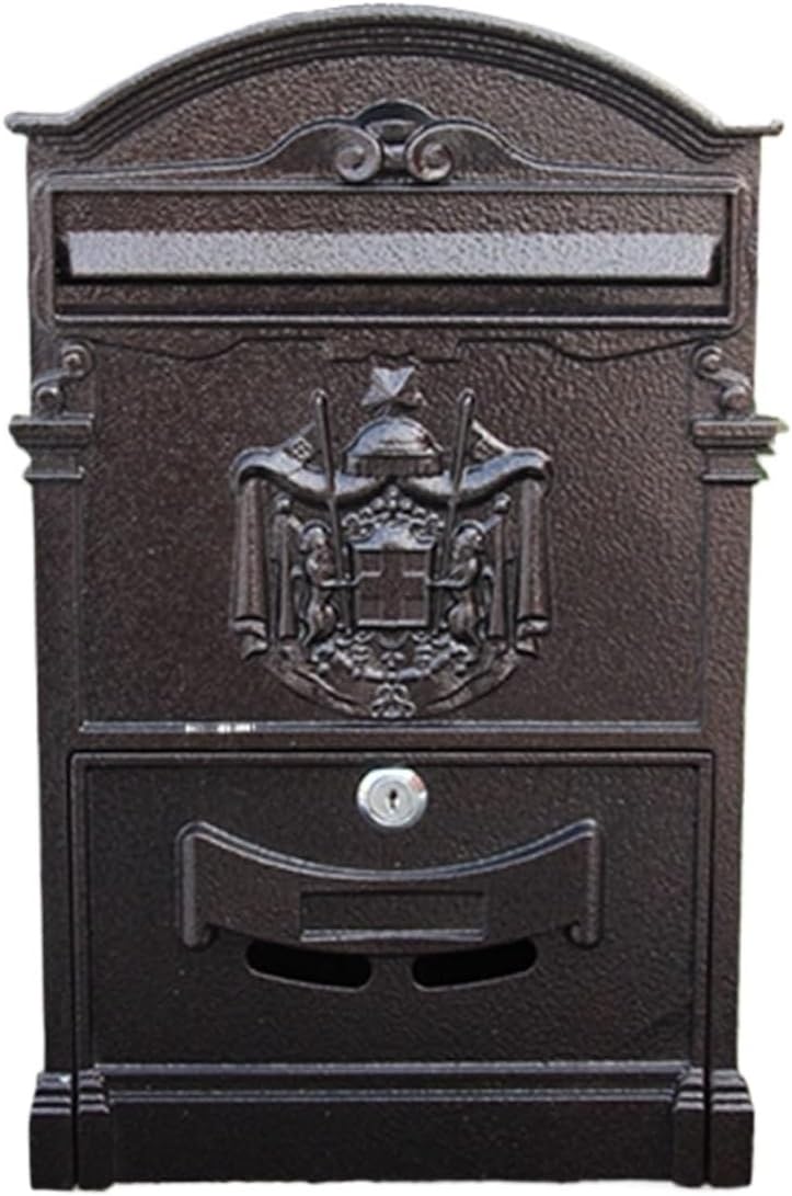 Retro Mailbox Postbox,Locking Mailbox Wall Mount Vintage Mailbox for Outside, Townhouse European Mailboxes with Sturdy Key Lock Outdoor Security Water Proof Post Box for House Porch Office