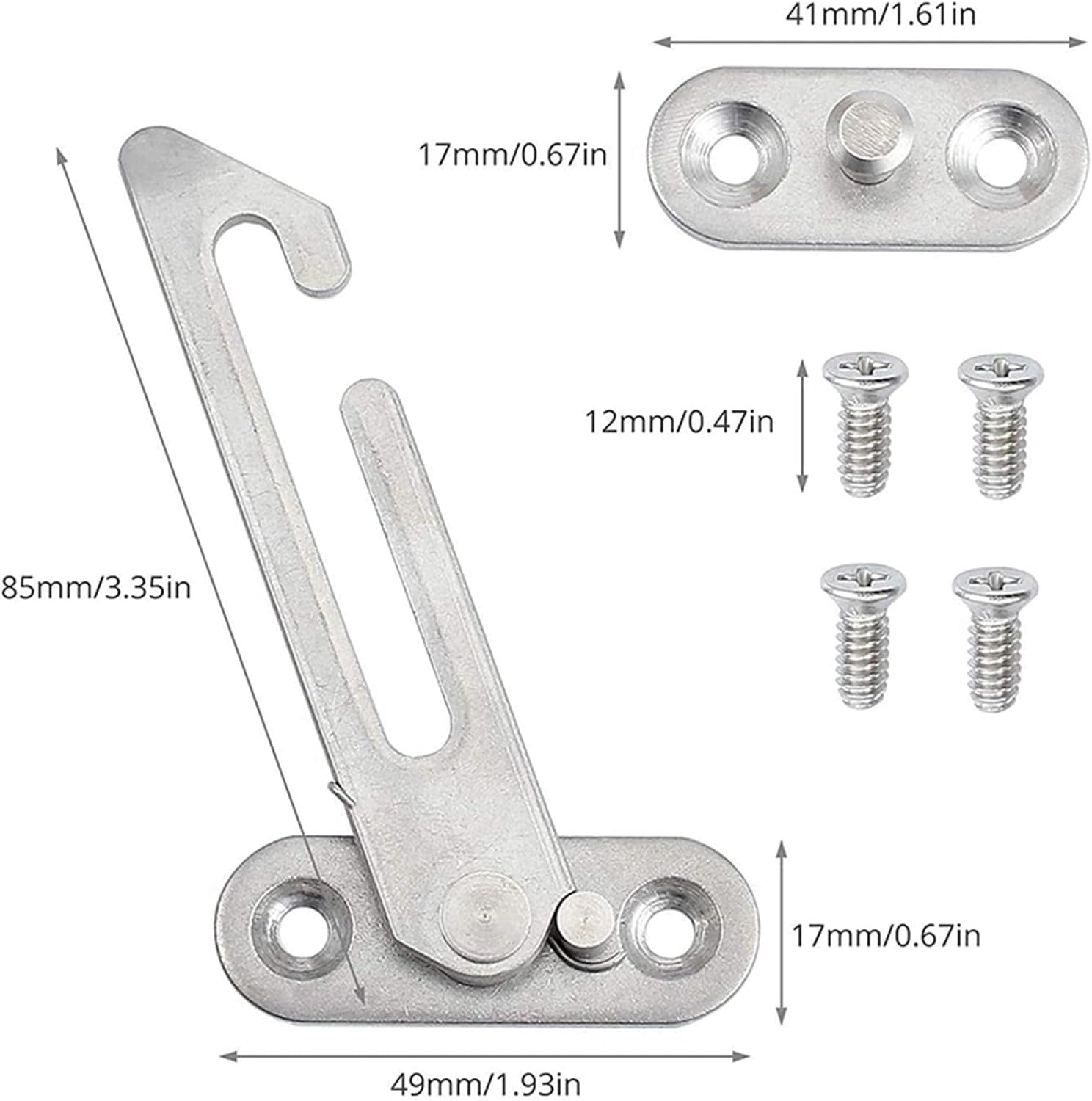 Product description Description:Window Lock: Special detachable design makes it easier to change the position of opening the window.Material: Window Restrictor is made of stainless steel, sturdy and high hardness, durable to use.Function: With powerful spring,which can effectively fixes the limit,Ensures your family members safe. Effectively reducing the risk of children and pets falling high windows.Application: the window restrictor can be used on the swinging window and the casement window,suitable for most types of windows and small doors. Perfect for home, public and commercial applications.Convenient to Use: , Window Limiter is suitable for opening windows with a distance of 14-17mm between the window frame and the window sash.Specification:Material: Stainless SteelSize Chart:8.3cmx4.5cm/3.27inchx1.77inchPackage Includes:1 Window LockNote:Please allow slightly errors due to manual measurement and different monitors. Manufacturer Contact Information LR DECOR E-SHOP, lrdecor5th@gmail.com (+91 9355385155)
