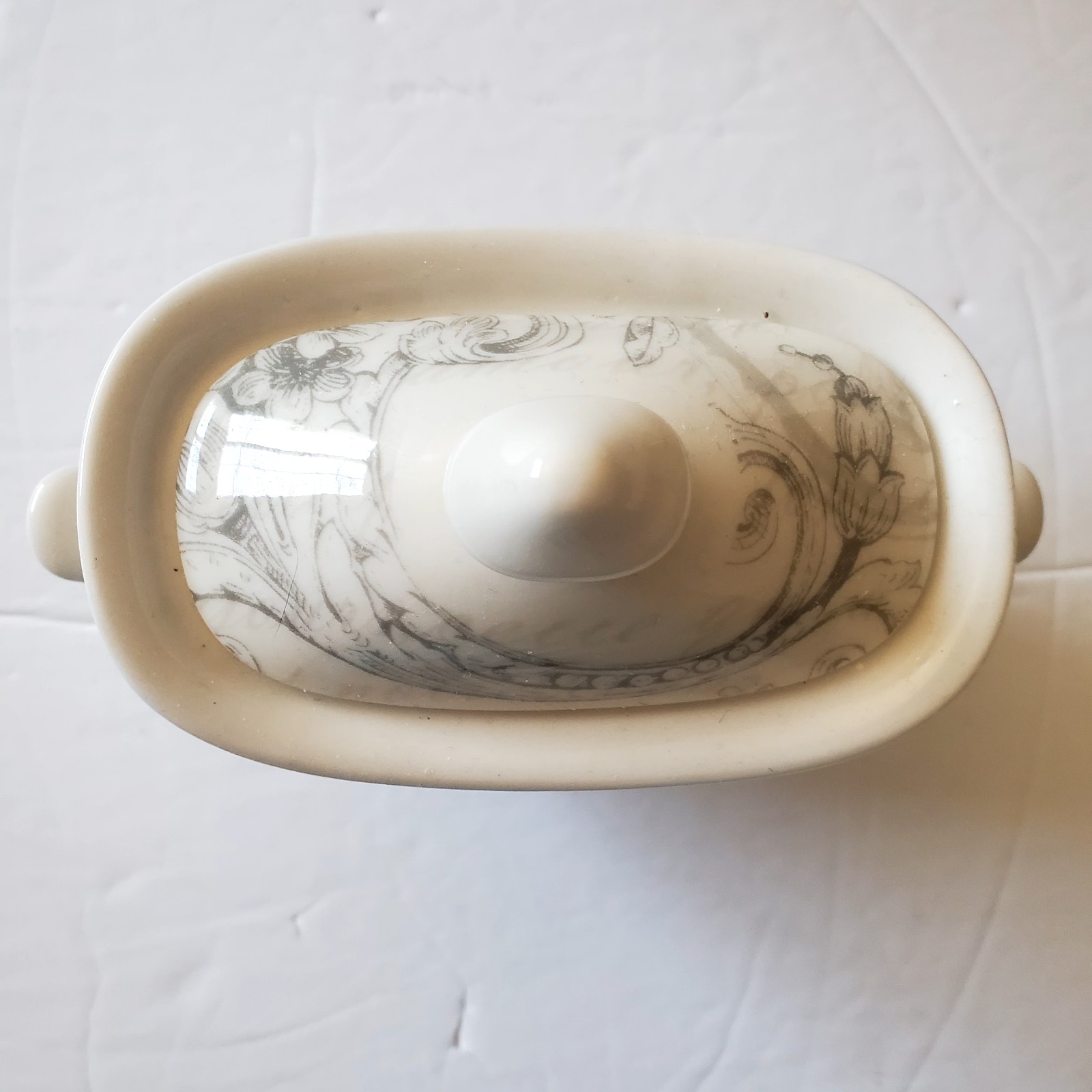 The sugar bowl has a small chip on the bottom. See last picture