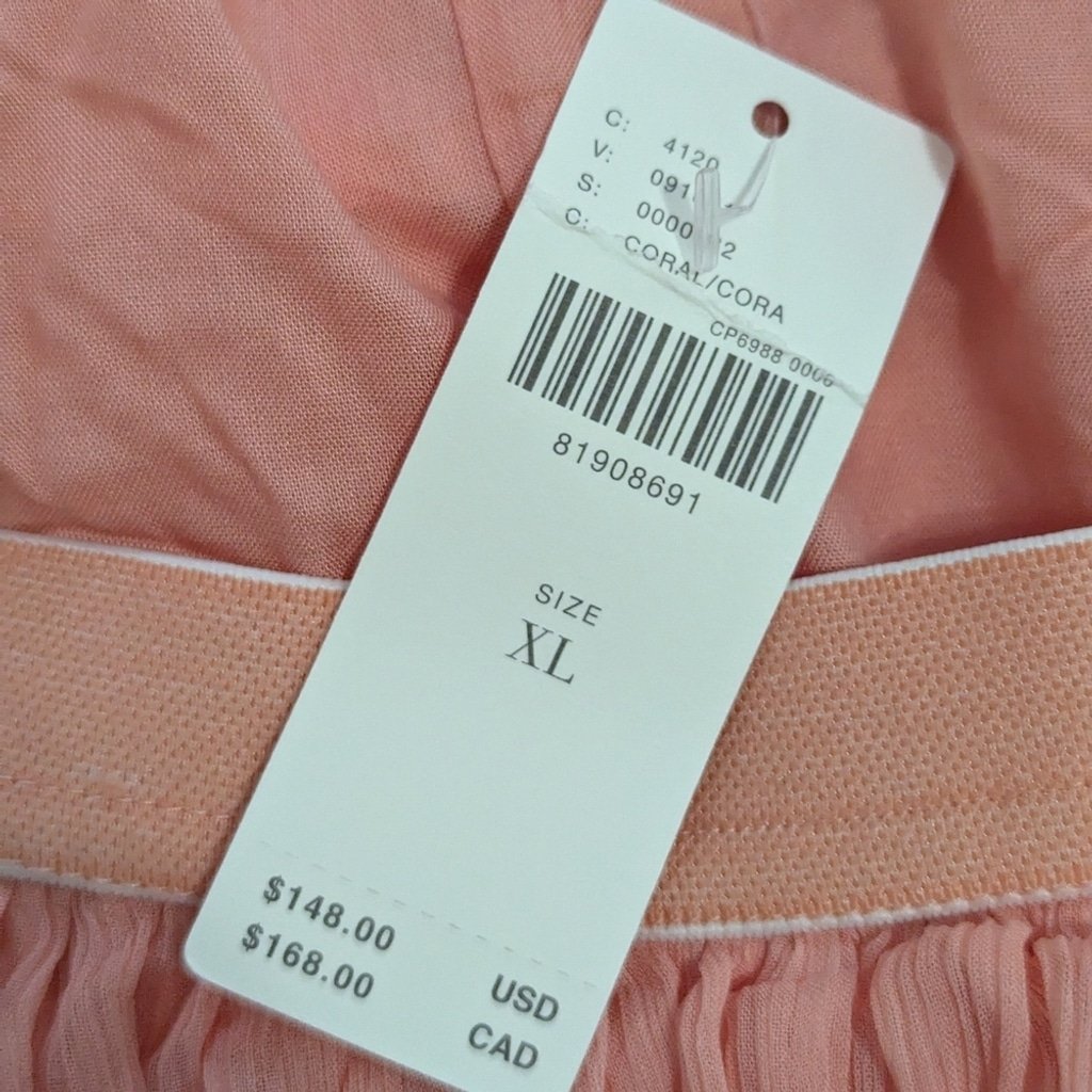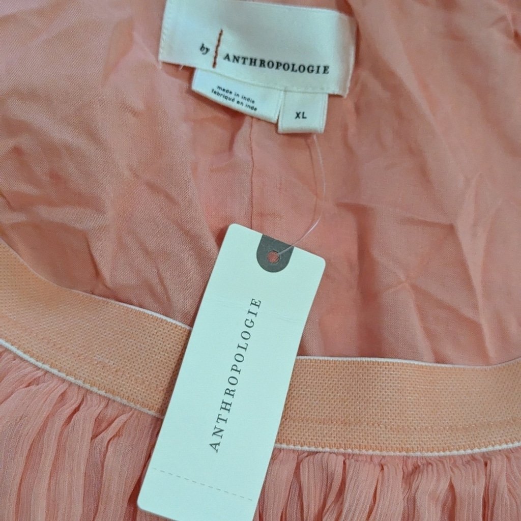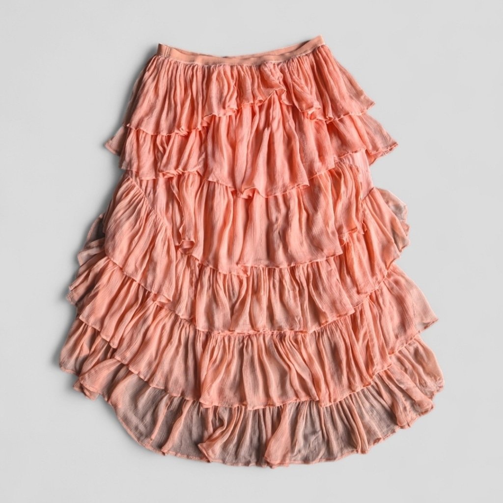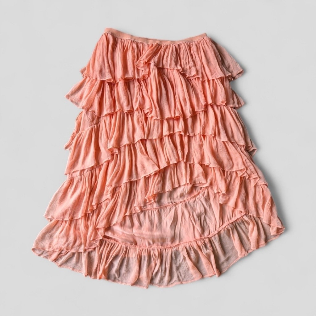 Anthropologie Tiered Ruffled Hi Low Skirt Fairycore Dusted Coral Maxi NWT Sz XL Elastic waist