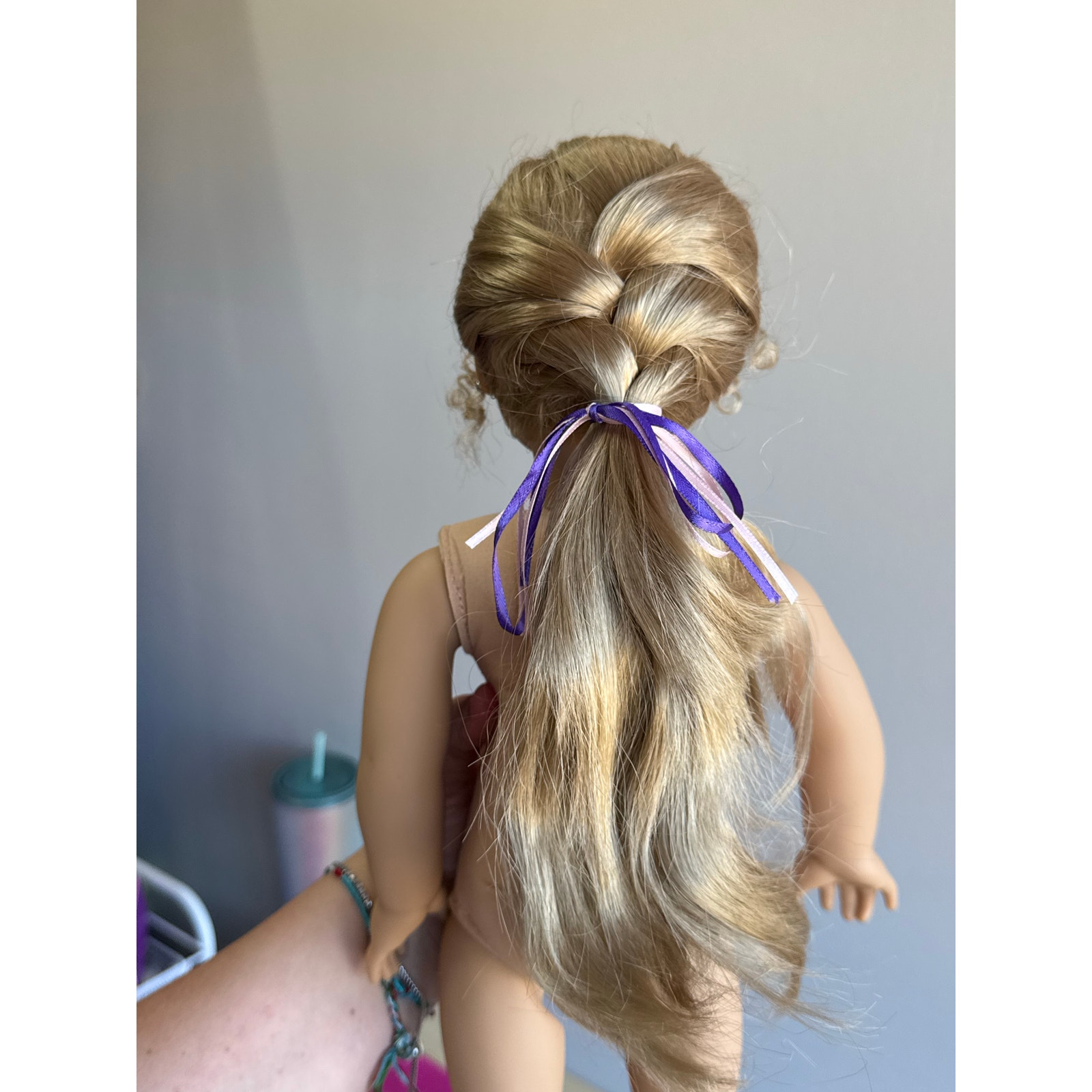 Good condition she does have a wobbly eye and small spots on her. Her hair was done at the salon.
