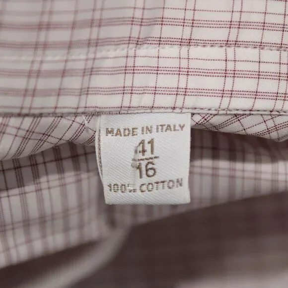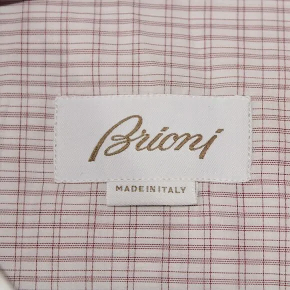 Hello! Up for purchase we have a great shirt.Item Specifics:Brand: BrioniPlease see photos with measurements to ensure satisfaction.Message us with any questions, and we will get back to you as soon as possible!RedDoes not come with original tags, but has the store tag attached and has never been worn. Please see measurements (in pictures) and pictures to ensure satisfaction.