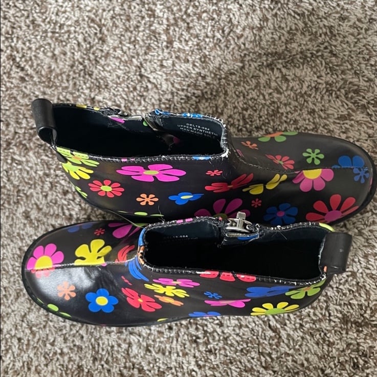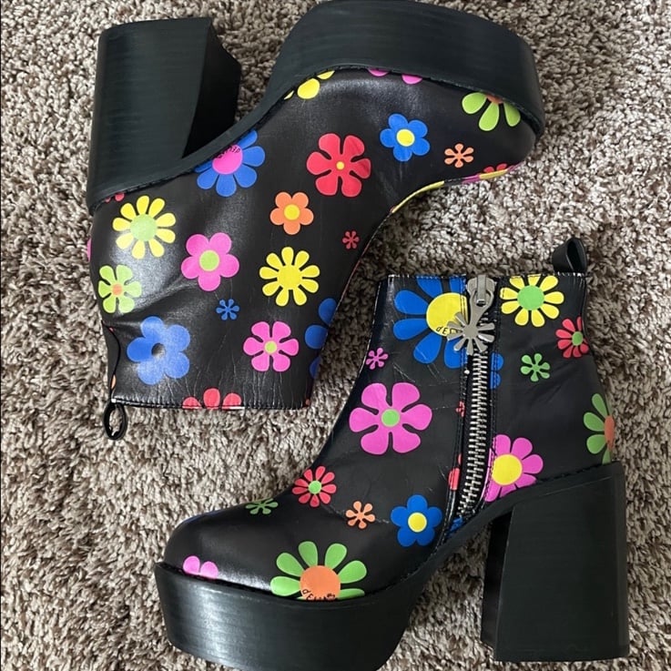 dELiA*s by Dolls Kill Flower Power Platform Boots cuz even daisies can’t compare to how cute ya are bb! Go frolic in the fields in these supa cute boots that have a funky floral print all ova, sky high platform soles, chunky heels N’ side zip closures. Good vintage condition with some minor wear. Platform and soles are in like new condition.