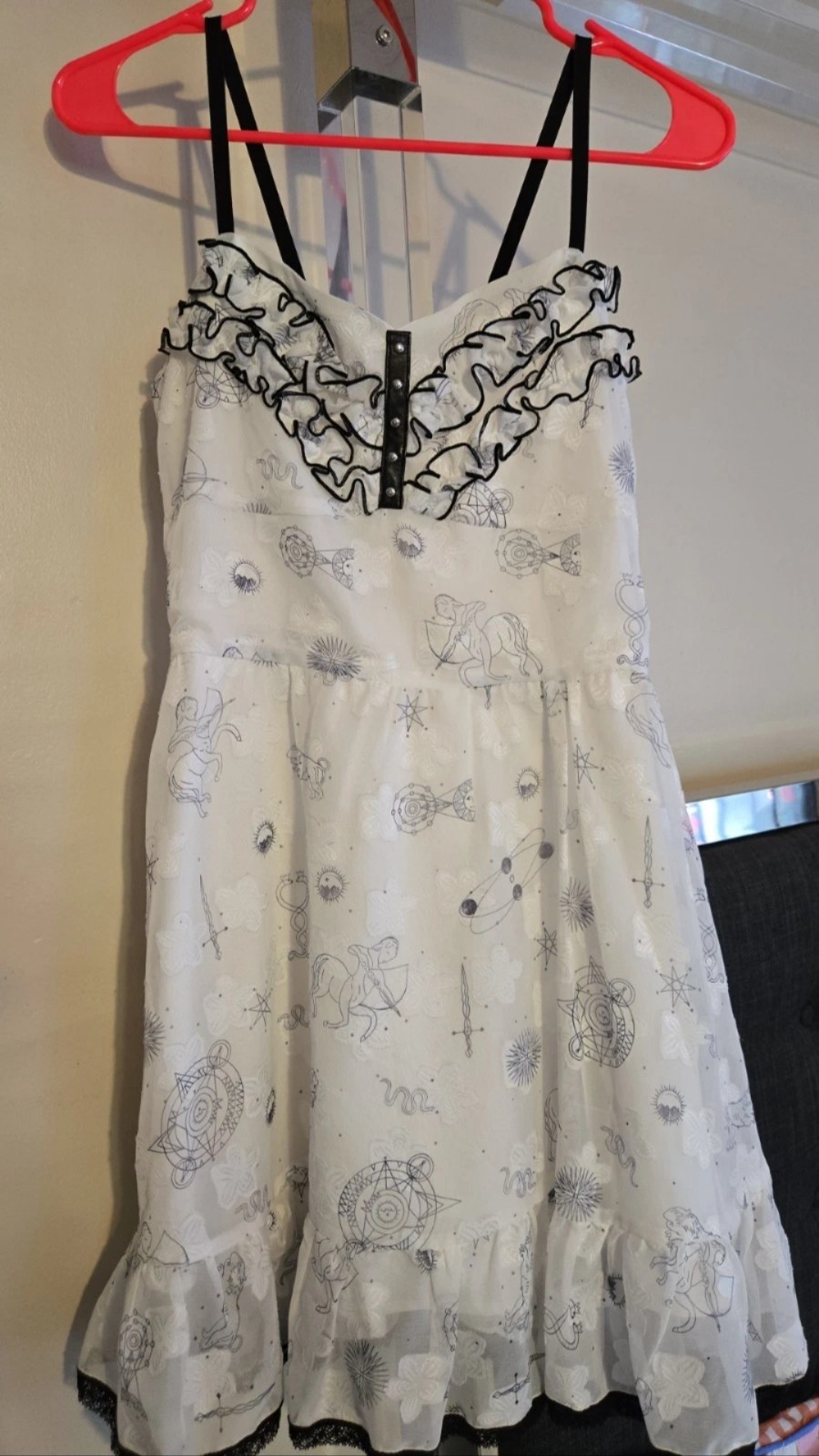 White Sheer overlay with celestial prints and silk embroidered flowers