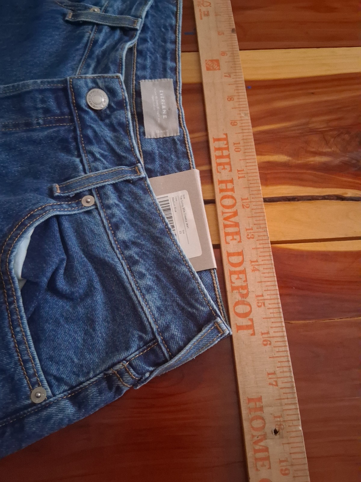 The Everlane The Curvy 90's Cheeky Straight Jeans in women's size 33 are a stylish and comfortable denim option for any wardrobe. With a high-rise fit and straight leg style. The solid blue color and medium wash add a versatile touch, while the brand's logo accents give a subtle yet chic look. Perfect for all seasons.