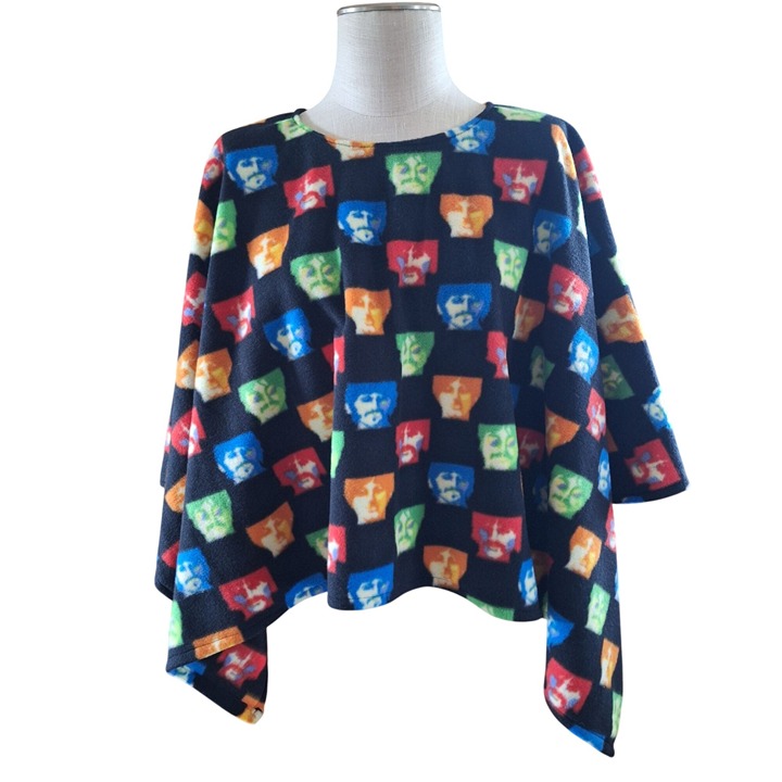 Let your inner Beatles fan shine while cozying up in a wearable masterpiece. This fleece poncho screams retro style and "All You Need Is Love" vibes—minus the chilly shoulders!