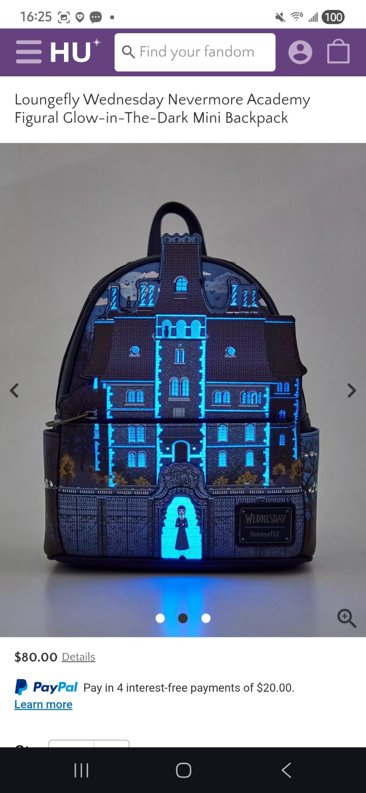 Loungefly Wednesday Nevermore Academy Figural Glow-in-The-Dark Mini Backpack