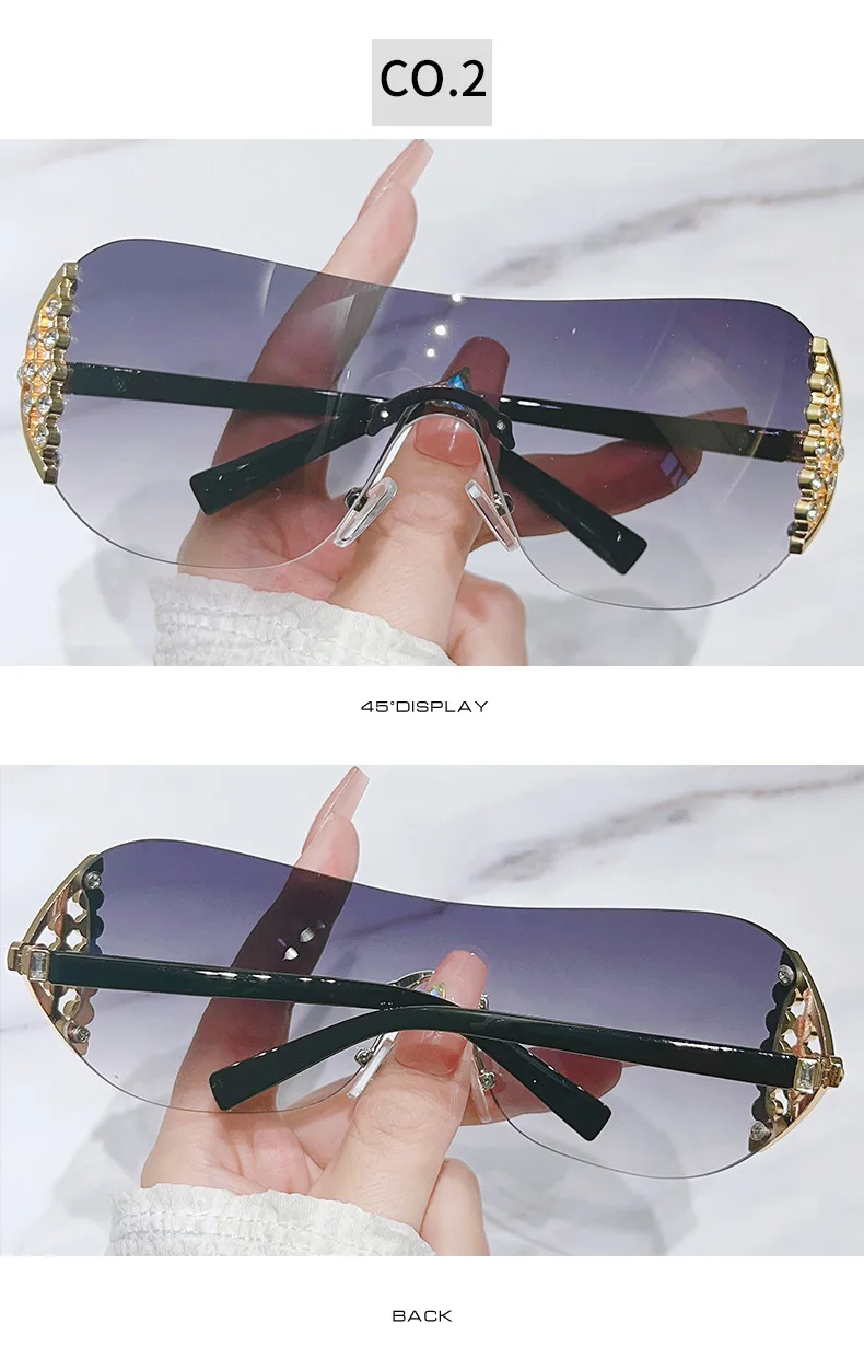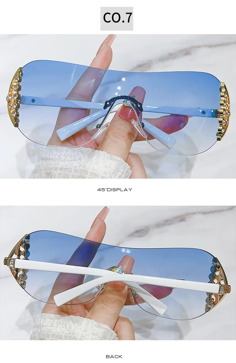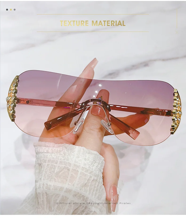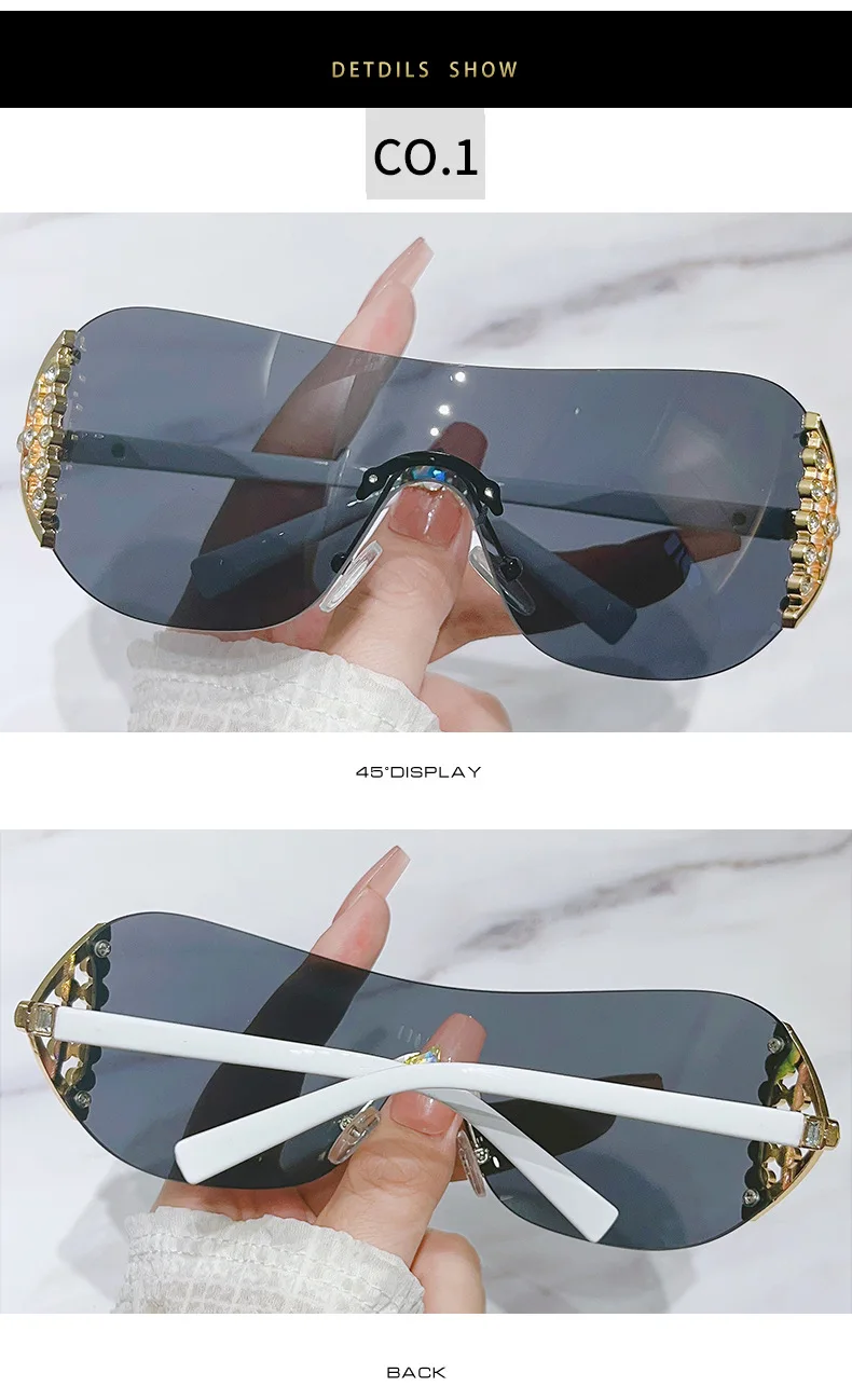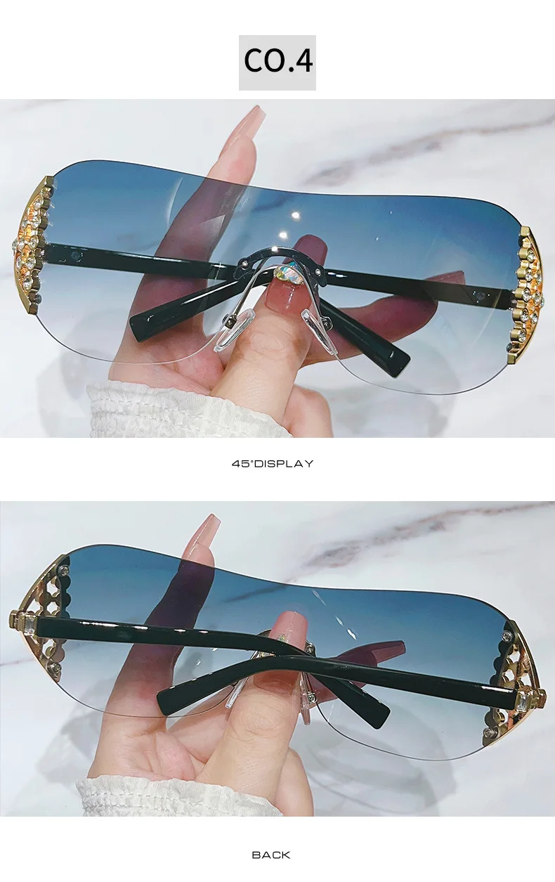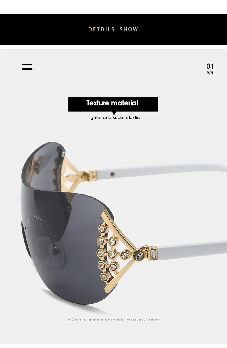 Luxury One-Piece Rimless Sunglasses Oversized Diamond Brand Designer Sun Glasses for Women