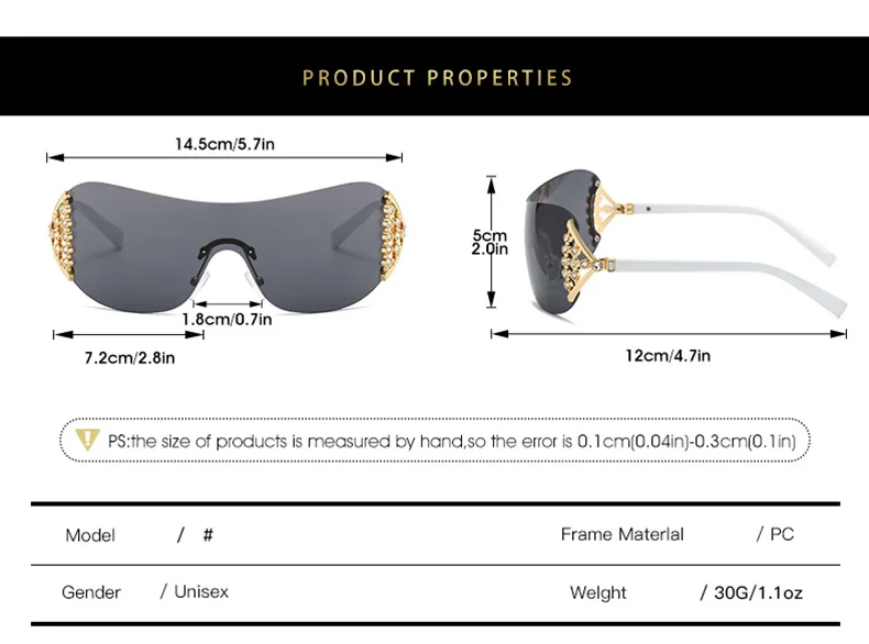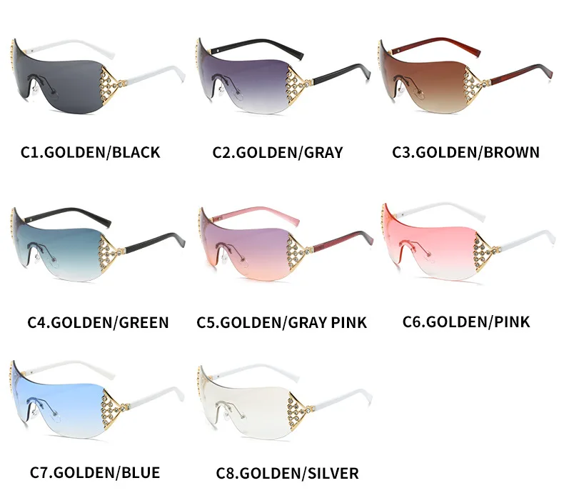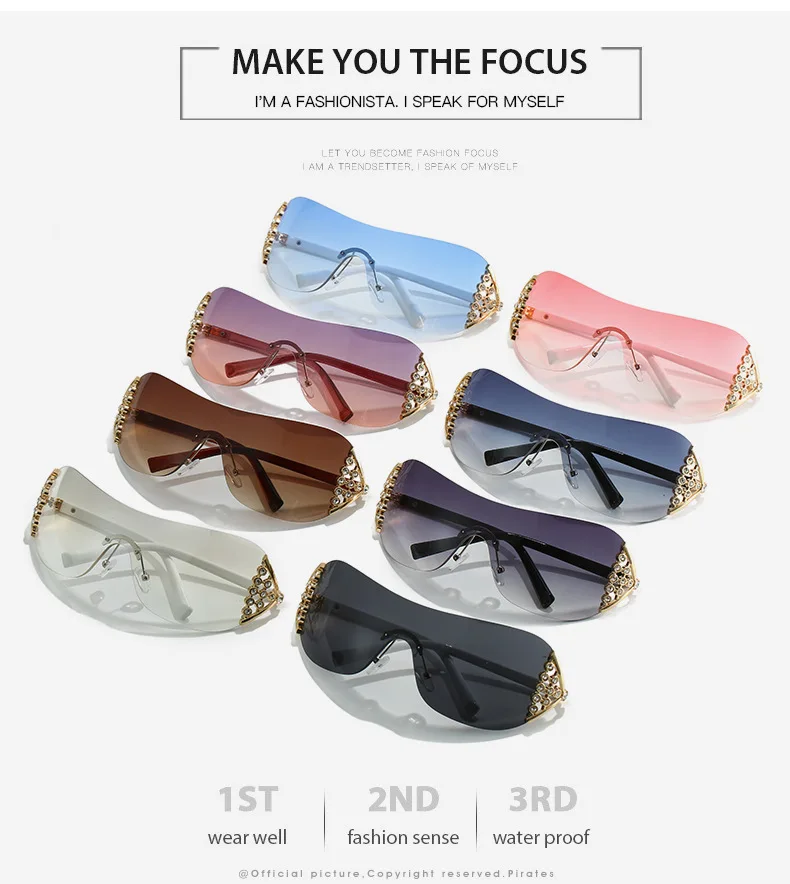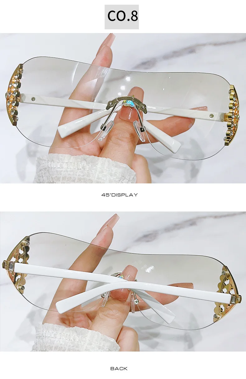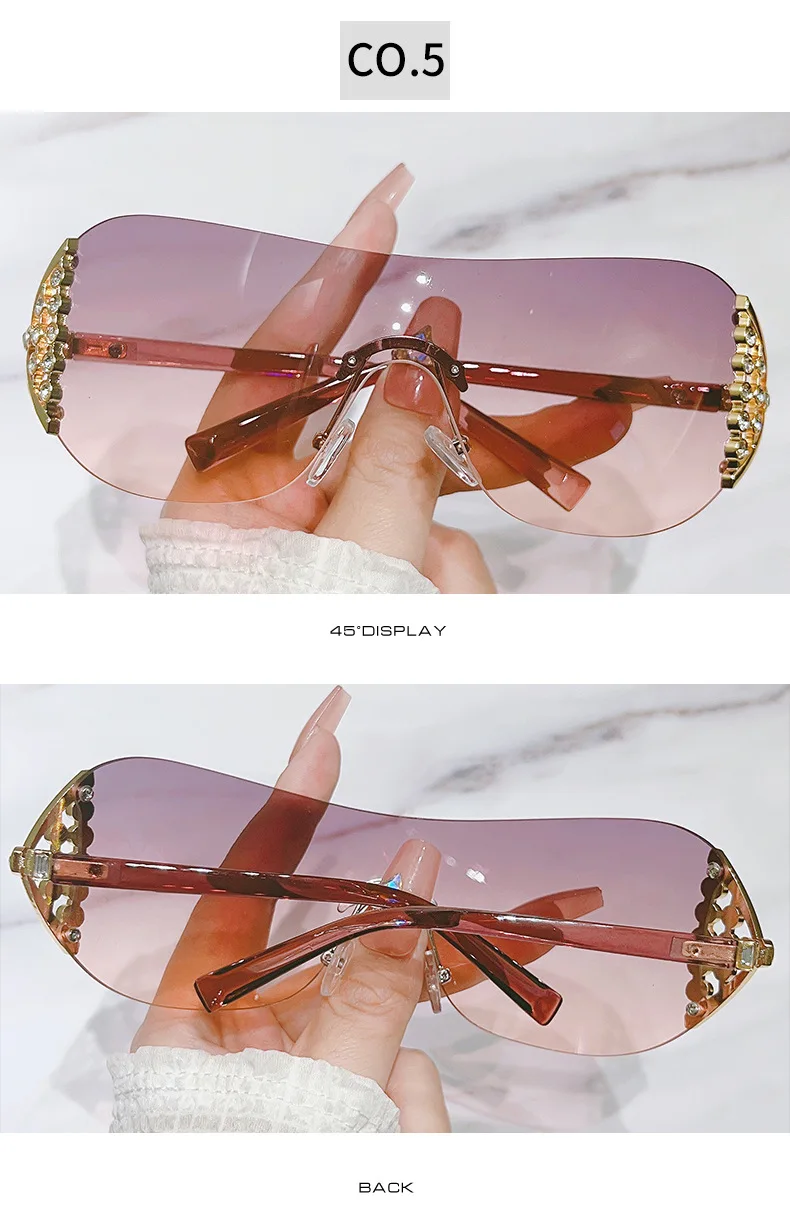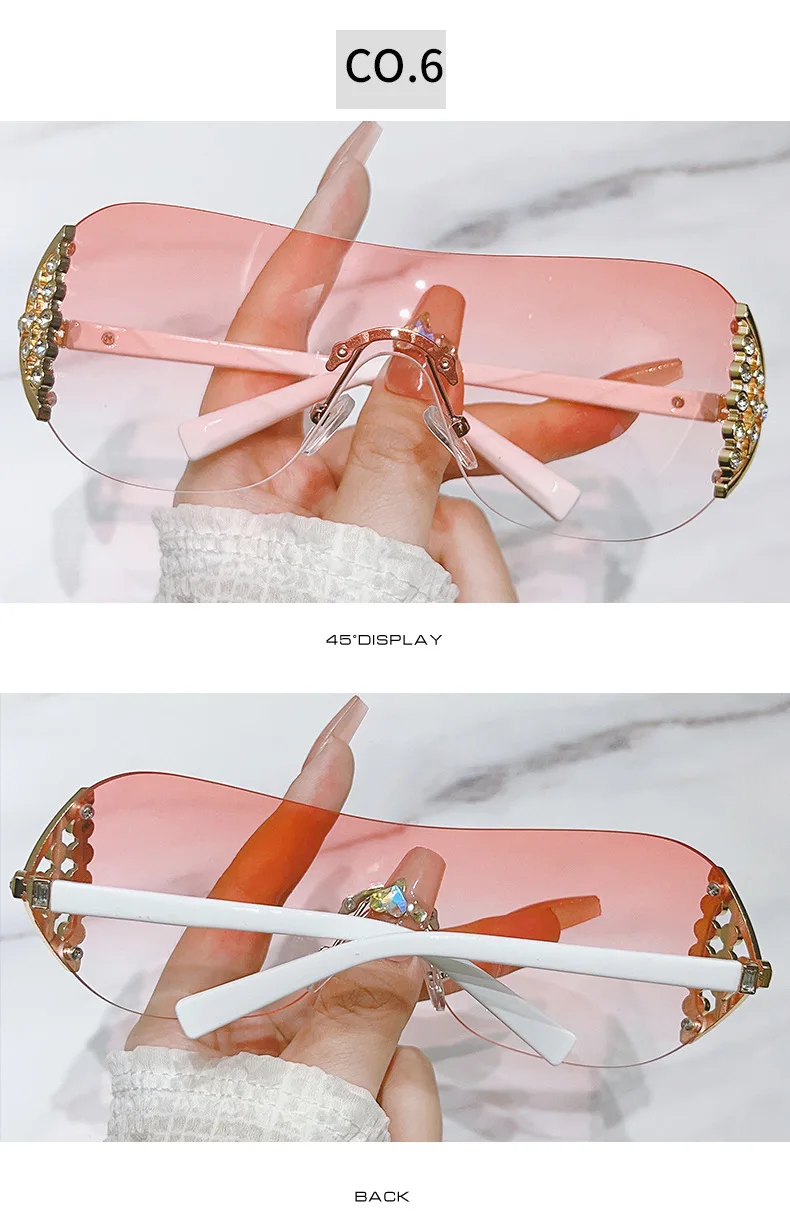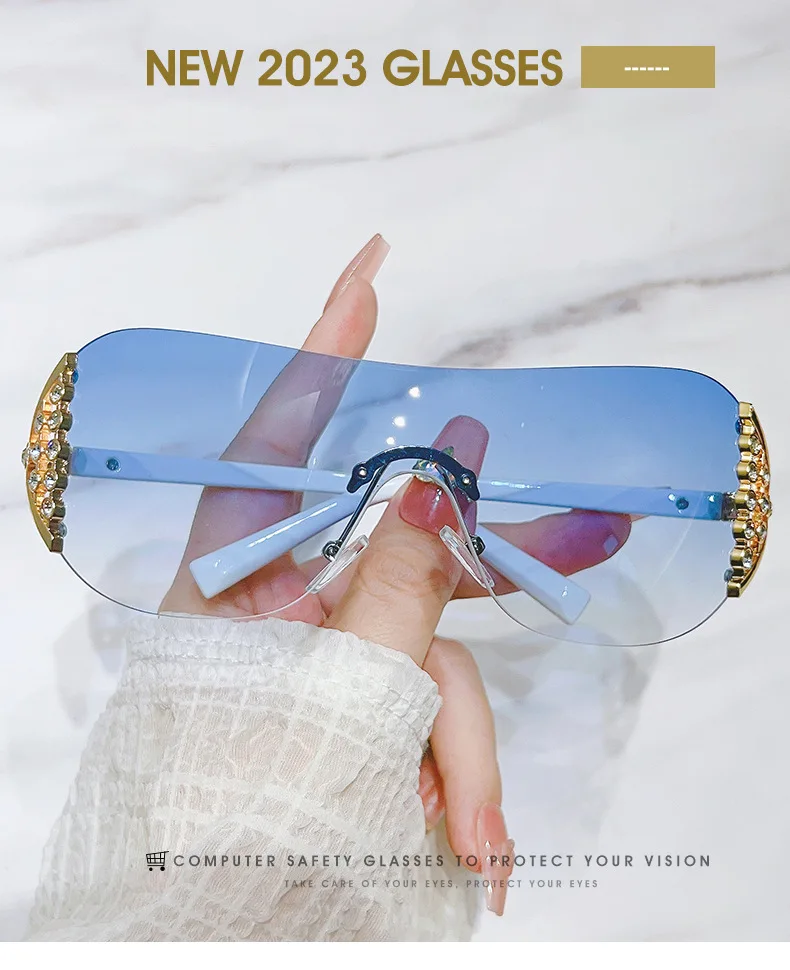 Luxury One-Piece Rimless Sunglasses Oversized Diamond Brand Designer Sun Glasses for Women