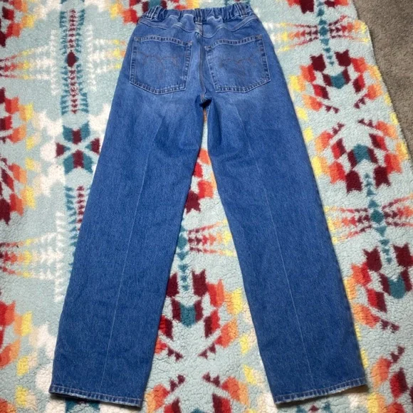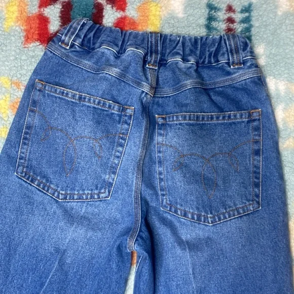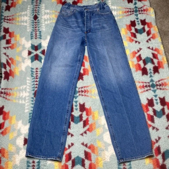 Gently used Meryll Rogge elastic waist straight leg jeans, size 26Comfort and class combine on cleanly creased jeans fashioned from sturdy nonstretch denim and topped with an elastic-eased waistband.Button flyBack elastic waistFive-pocket style100% cottonDry cleanMade in ItalyWaist lying flat-12”-13.5” stretched Inseam-32.5”Rise-12.5”