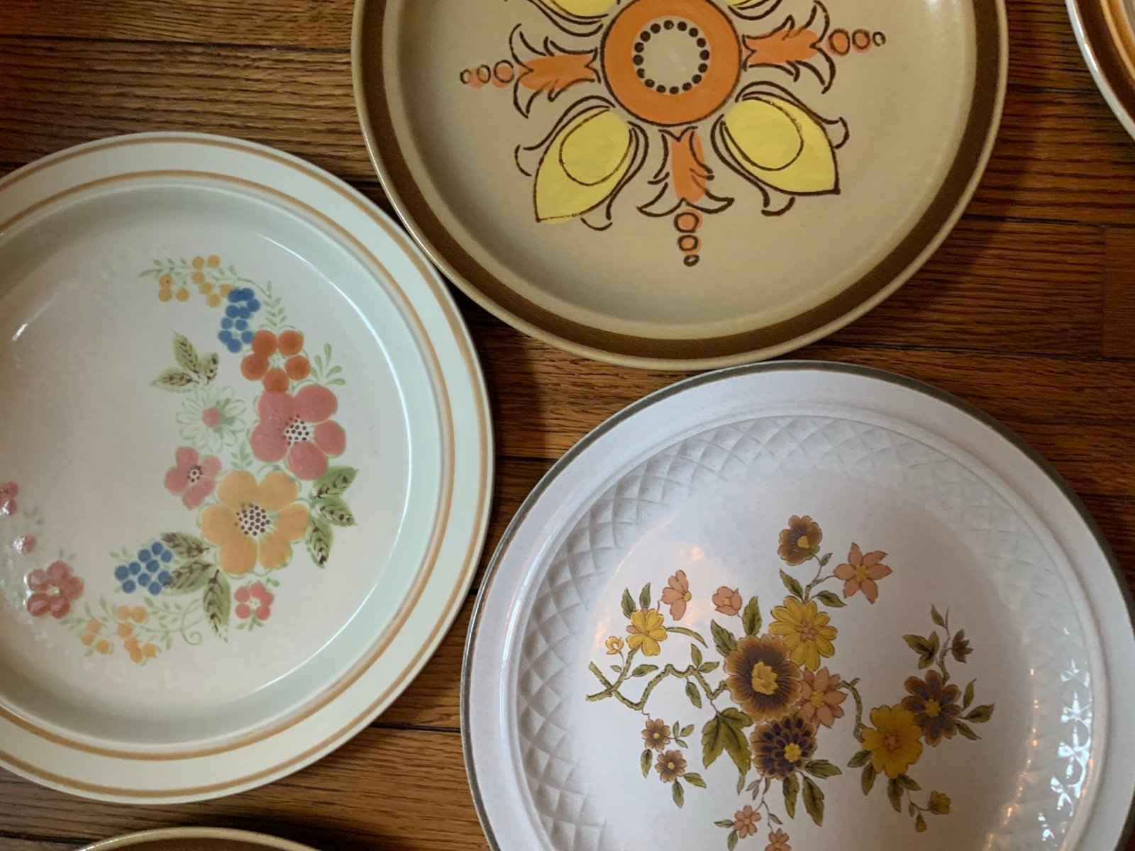 Group of 7 stoneware dinner plates retro from 70’s and 80’s