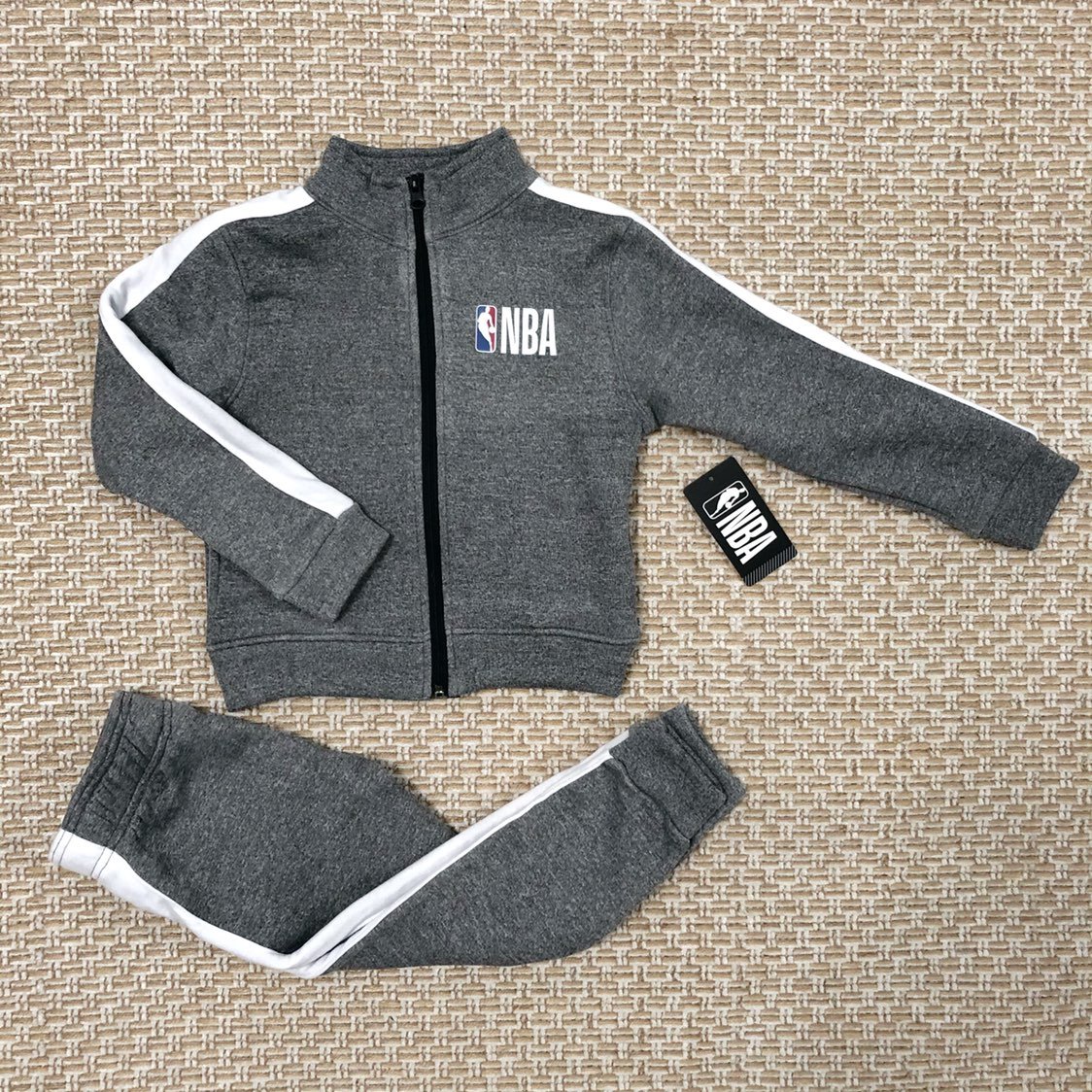 NBA Basketball Boy’s Sweatsuit in gray with white side panels. Jogger style sweatpants.