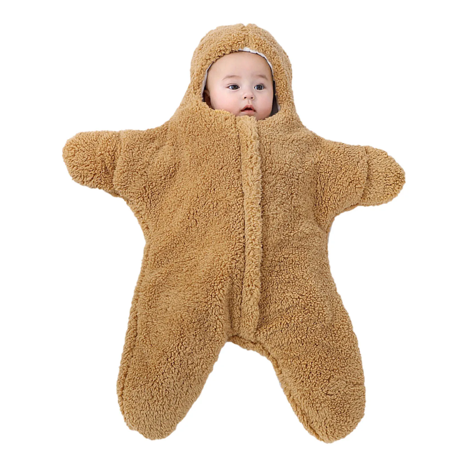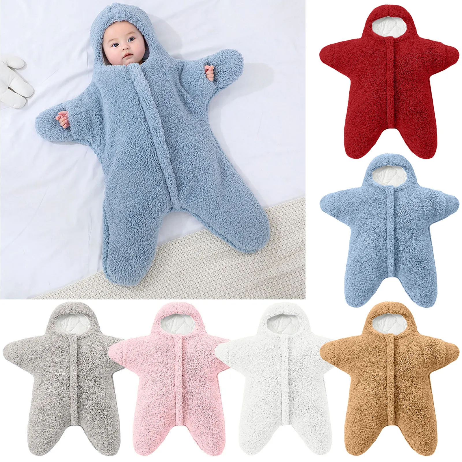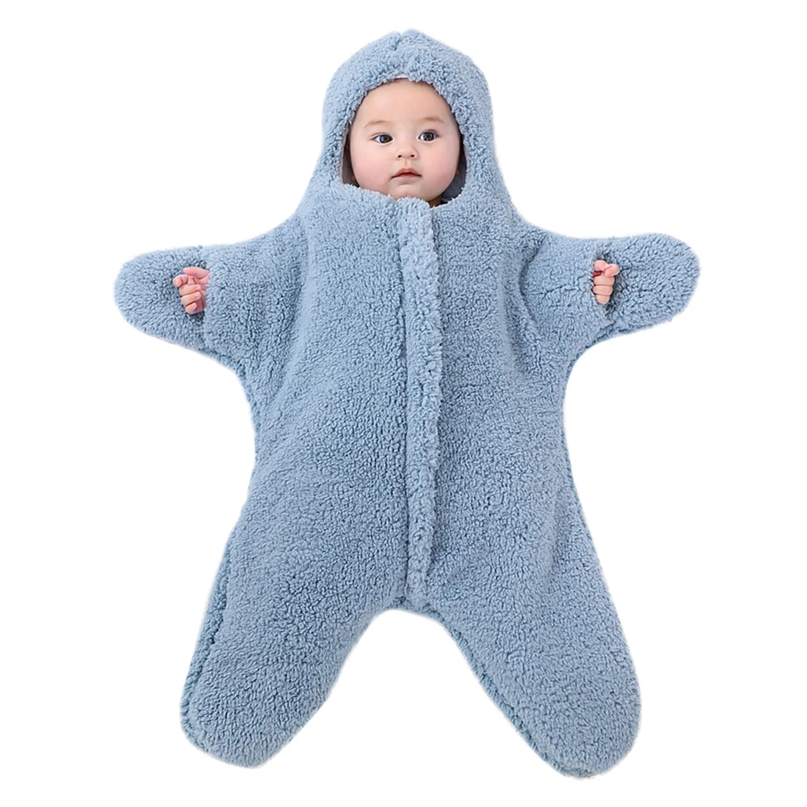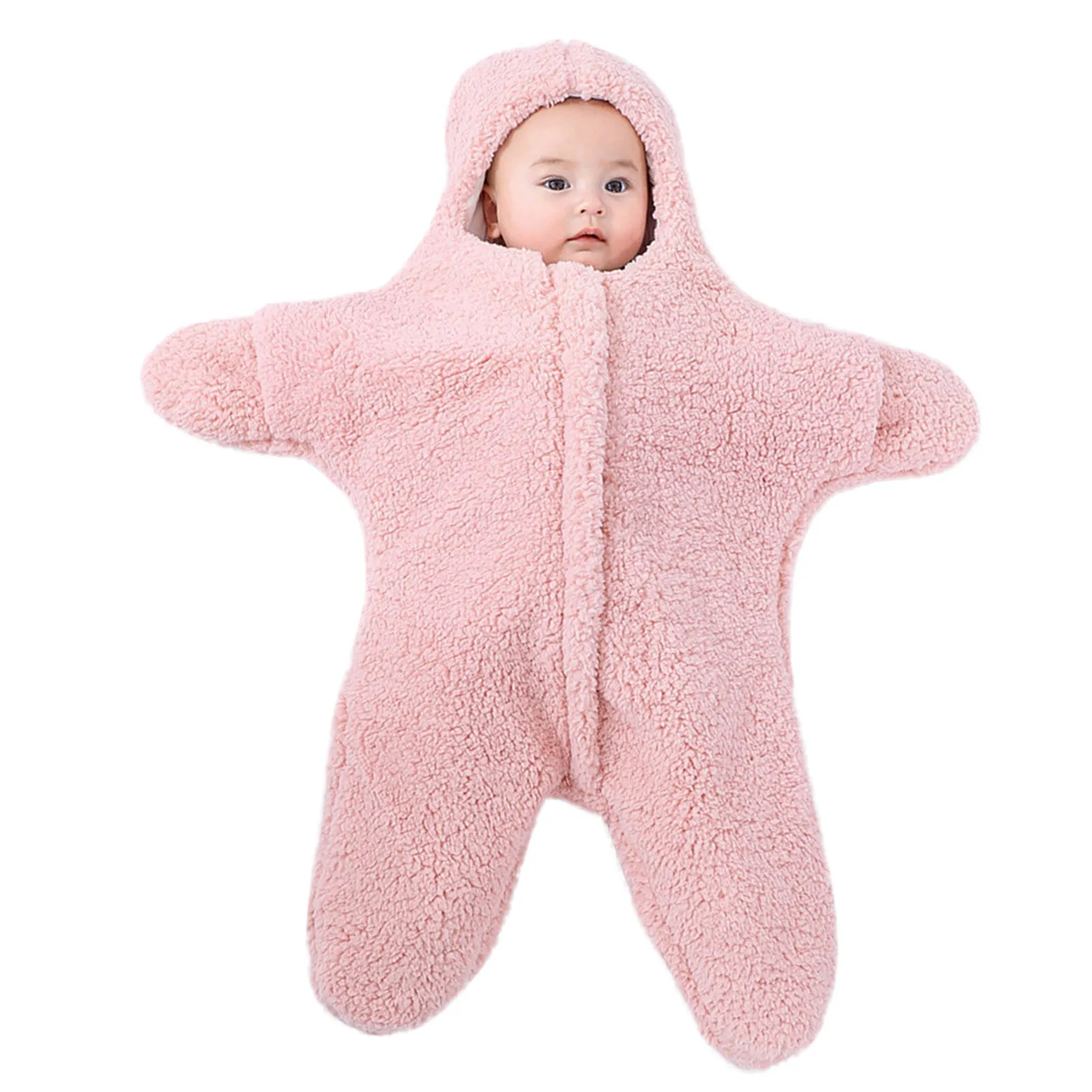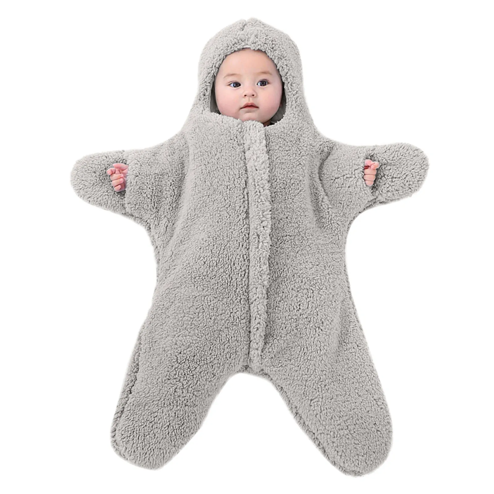 Our soft baby blanket swaddle with separate leg style,windproof cap and star shape design.It is a good choice for outside or travelling.