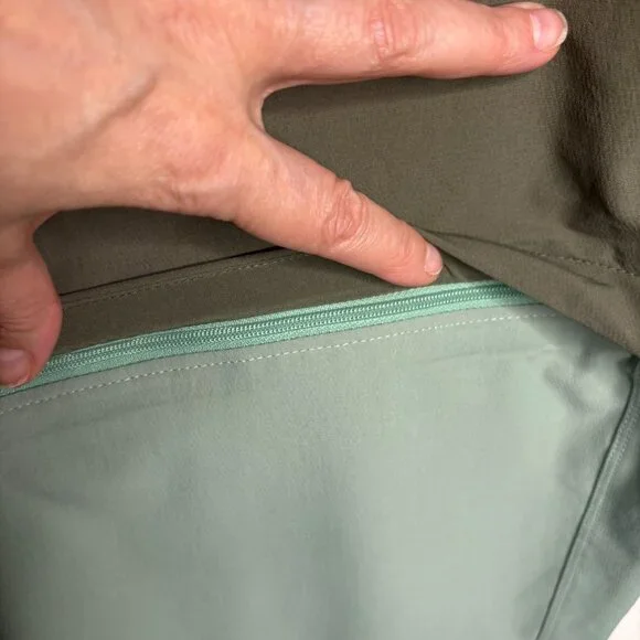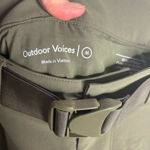 OUTDOOR VOICES RecTrek Zip Off Convertible Cargo Pants Green (MSRP $138)From the manufacturer: A durable, wind and water-resistant pant made in RecTrek. Featuring zip-off sections that allow you to wear them three ways.3 colors - green shadesWomen'sSize LargeRelaxed, high-rise pants32 inch waist29.75 inch inseam for pants3.75 inch inseam shortsBrand new. Does not have tags. Came in poly bag, removed from bag.