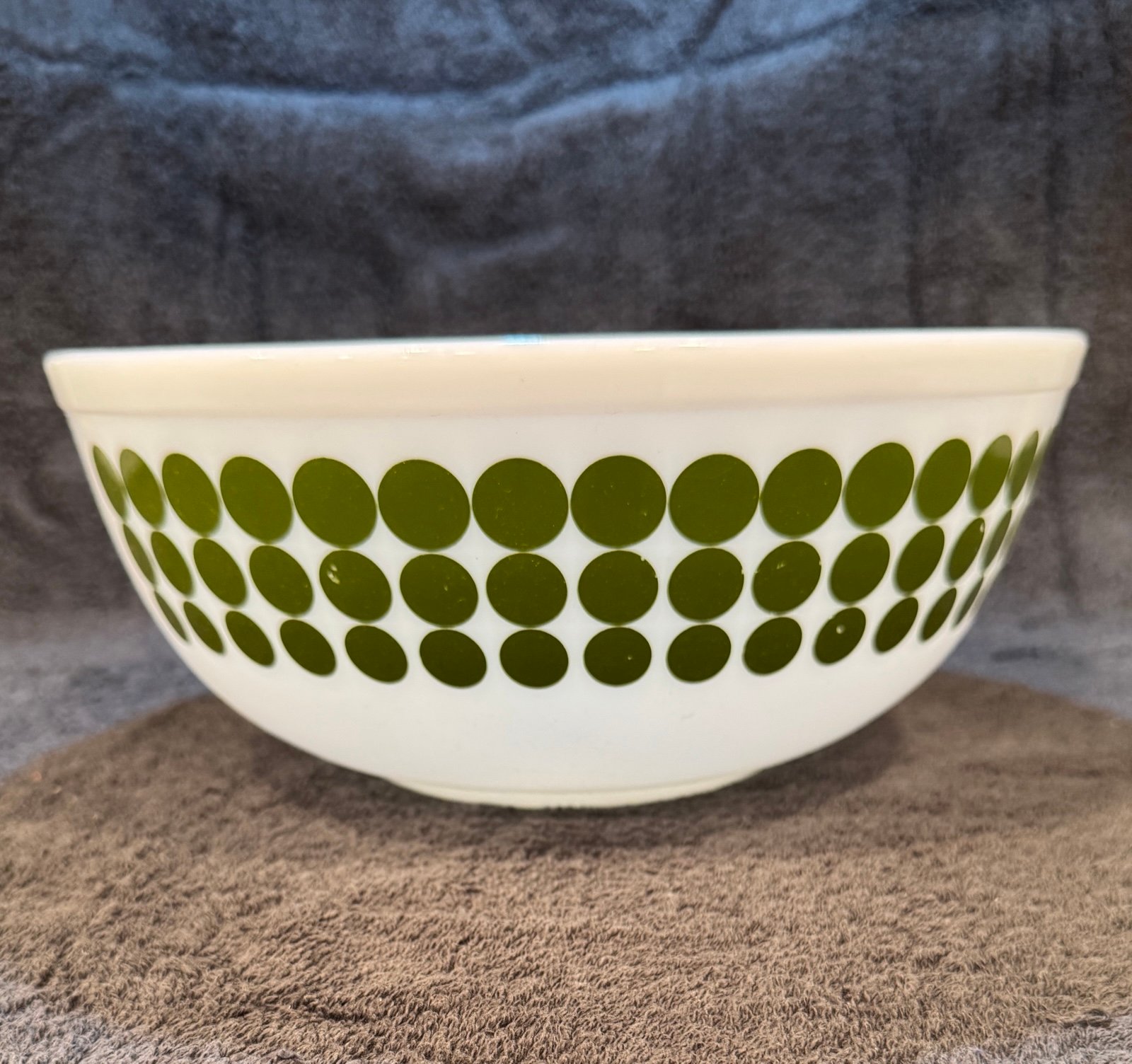 PYREX #404 Green Polka Dot 4QT Mixing Serving Bowl 1968-1973 Vintage Large USA