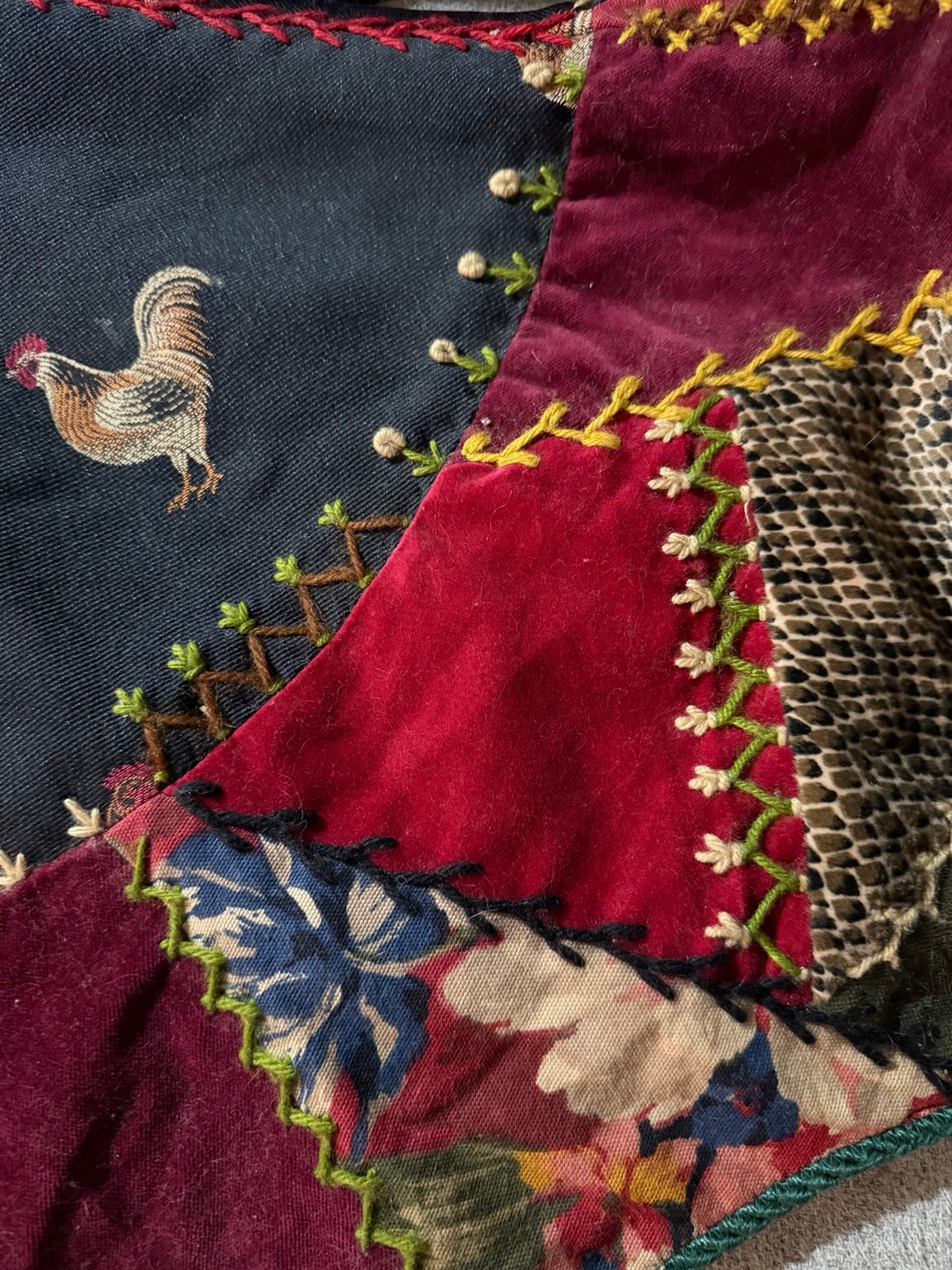 - Wool embroidery quilted patchwork design