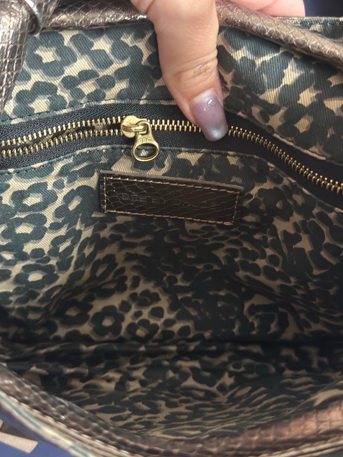 Bronze SEE BY CHLOE snakeskin leather shoulder/ crossbody bag with zip closure and tassel detail. Has two front pockets and a small interior pocket. Inside is very clean zero stains or tears. Exterior is in great condition just small discoloration spots on the backside shown in 3rd image. Hardware has some discoloration/ scratches as well shown in last image. Overall in very good condition