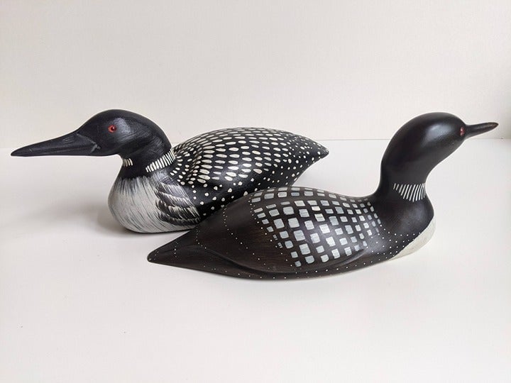 This listing is for one Vintage Hand Carved & Painted Wood Loon Decoy Unsigned (or signature under the felt). Cottage Cabin Lodge Painted Bird Wood Carving Sculpture.