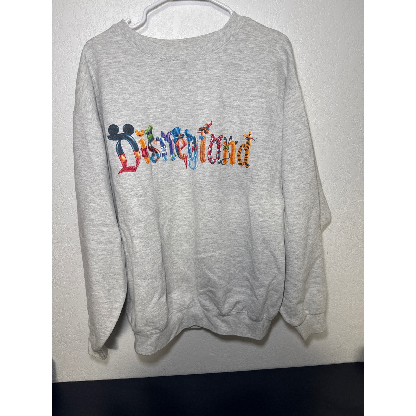 Relive the magic with this vintage Disneyland sweatshirt. Its soft, comfortable feel envelops you in cozy nostalgia, perfect for cooler days or evenings spent reminiscing about your favorite Disney memories. The colorful 'Disneyland' spell out design, adorned with whimsical character-themed letters, adds a playful touch that captures the essence of the happiest place on earth. Wear it to a theme park outing, a casual weekend brunch, or a cozy night in for a touch of Disney magic.