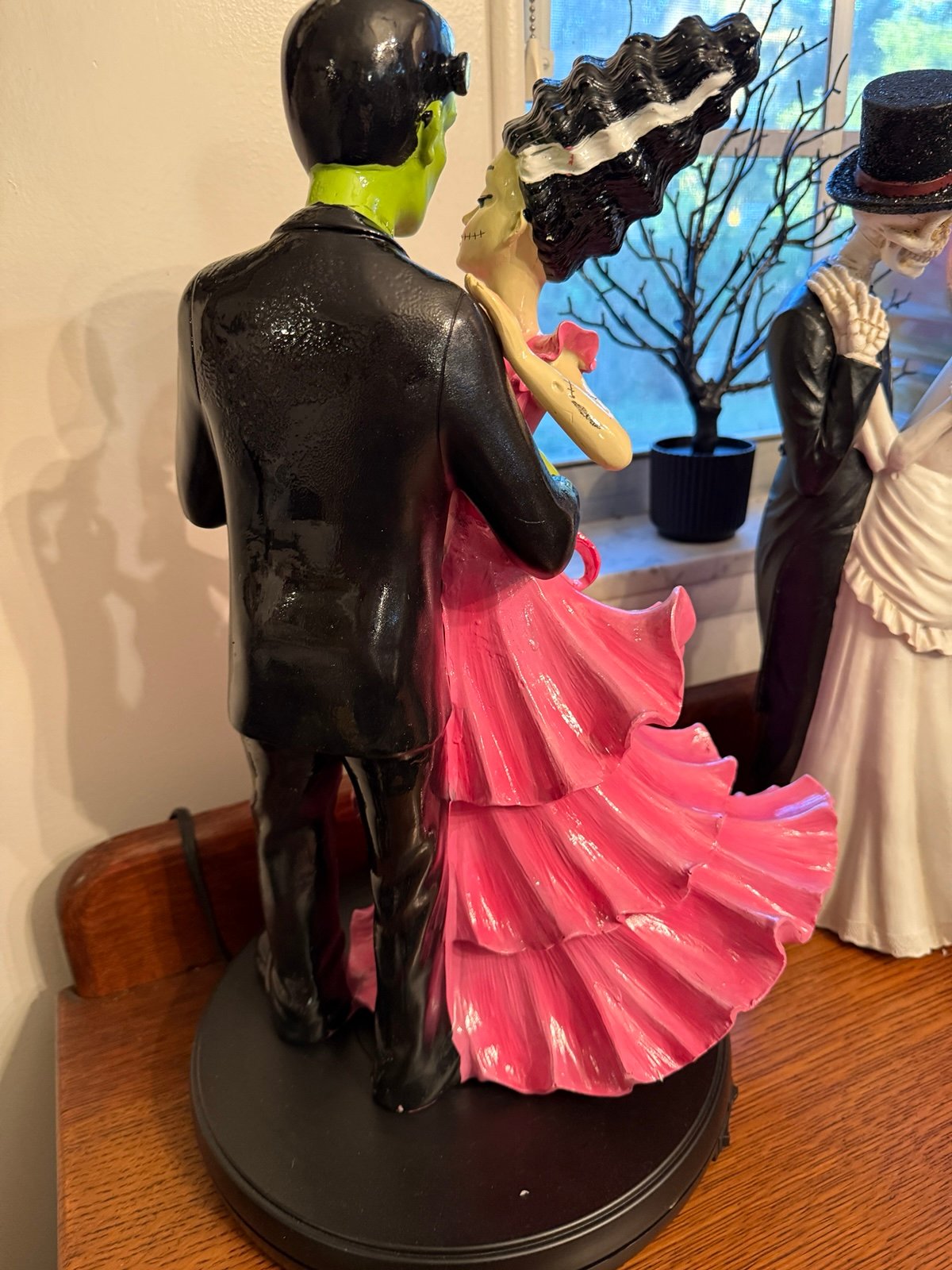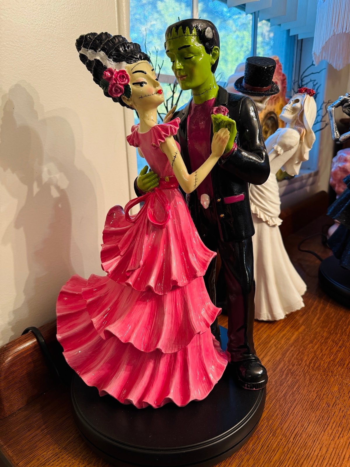 Viral Pink and Black Mr. and Mrs. Frankenstein Dancing Couple Figurine