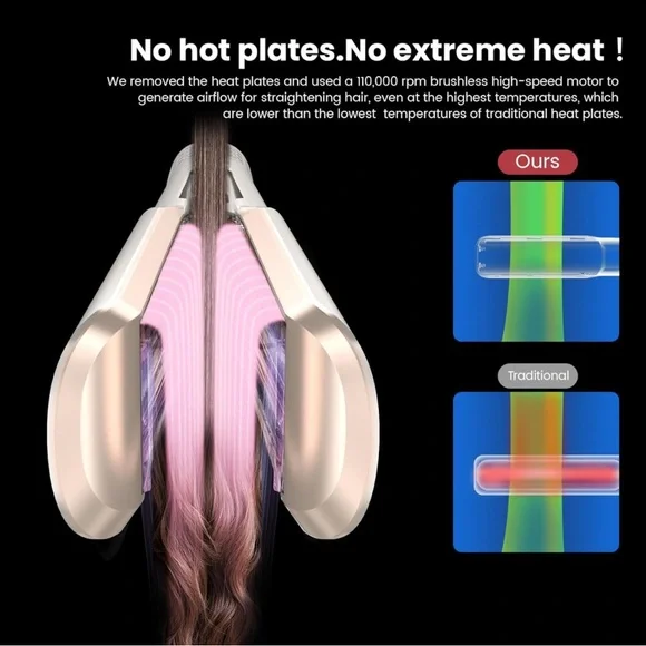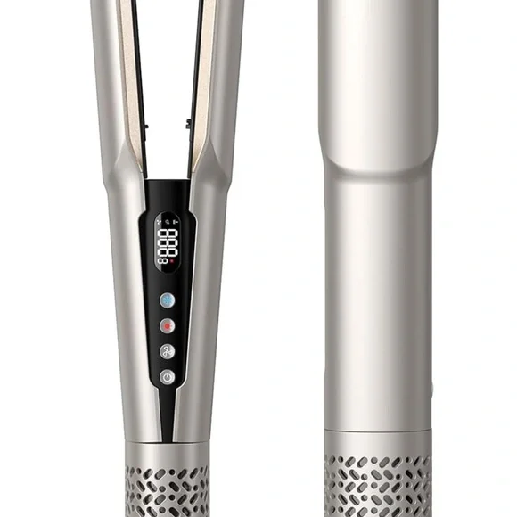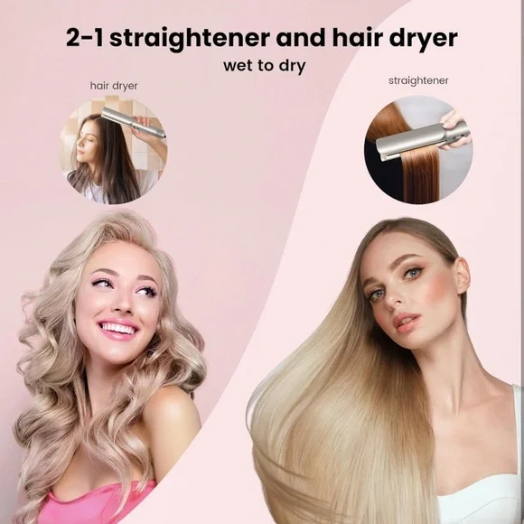 • Brand New in Box / Purchased from Amazon • 100% Authentic • Champagne Gold 2 In 1 Straightener: 110,000 rpm high-speed motor, up to 23m/s air speed, Ultra fast enough for wet to dry and straightening hair simultaneous in one tool.Rapid Heat-Up: Achieve salon-quality results in no time with the high-speed airflow heating technology that heats up in just one second.Customizable Temperature: Adjust the temperature between COOL;195°F;250°F;285°F;320°F to suit your hair type and desired styling.Smooth Glide: The 2-inch widen floating ceramic plates glide effortlessly through hair, ensuring snag-free straightening.IntelliSense: Adopt automatic sensing technology to blow air only when clamping the hair. For added safety, Idle for 10 seconds to enter standby mode, and the straightener will automatically turn off after 3 minutes of non-use.Compact and Portable: The lightweight and compact design including a storage bag makes it perfect for travel or on-the-go styling.• All sales are final / No Exchange / No Refund